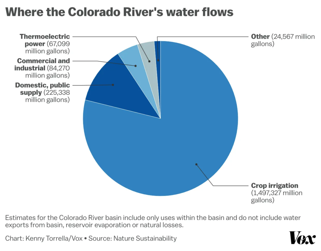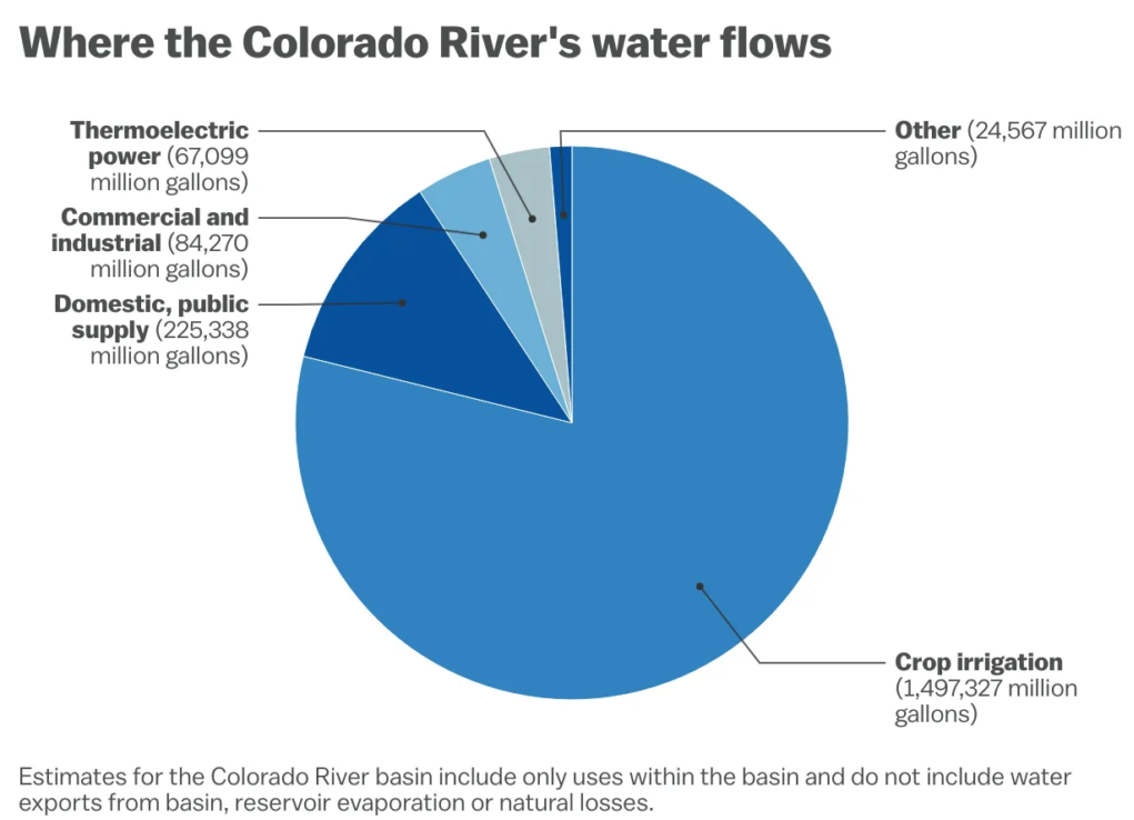 Colorado River Statistics: (NOTE 70% OF COLORADO RIVER WATER IS USED FOR CROP IRRIGATION!)