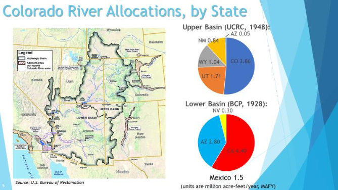[under construction: helping people see that it is over-allocation to lower basin states NOT any type of long term, unprecedented climate crisis that is causing scarcity in the Colorado River.]