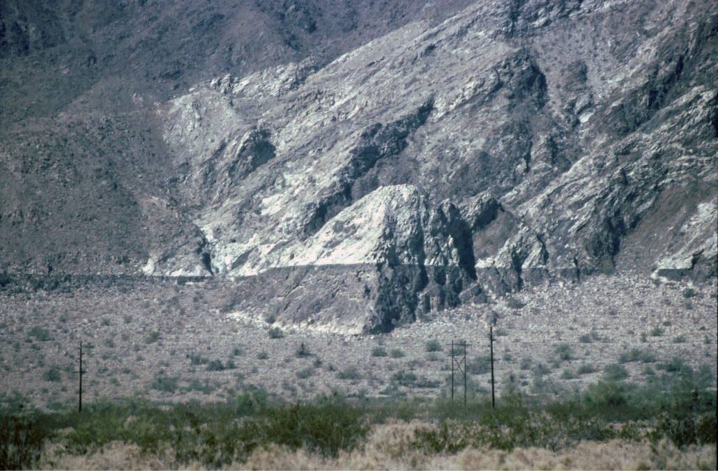 Image of Lake Cahuilla Shoreline, just above Coolidge Springs north-west of the Modern Salton Sea. Ancient shoreline of the short-lived Lake are readily visible.  (Image from google earth from user Robert Hyatt. Likely open source-ish)